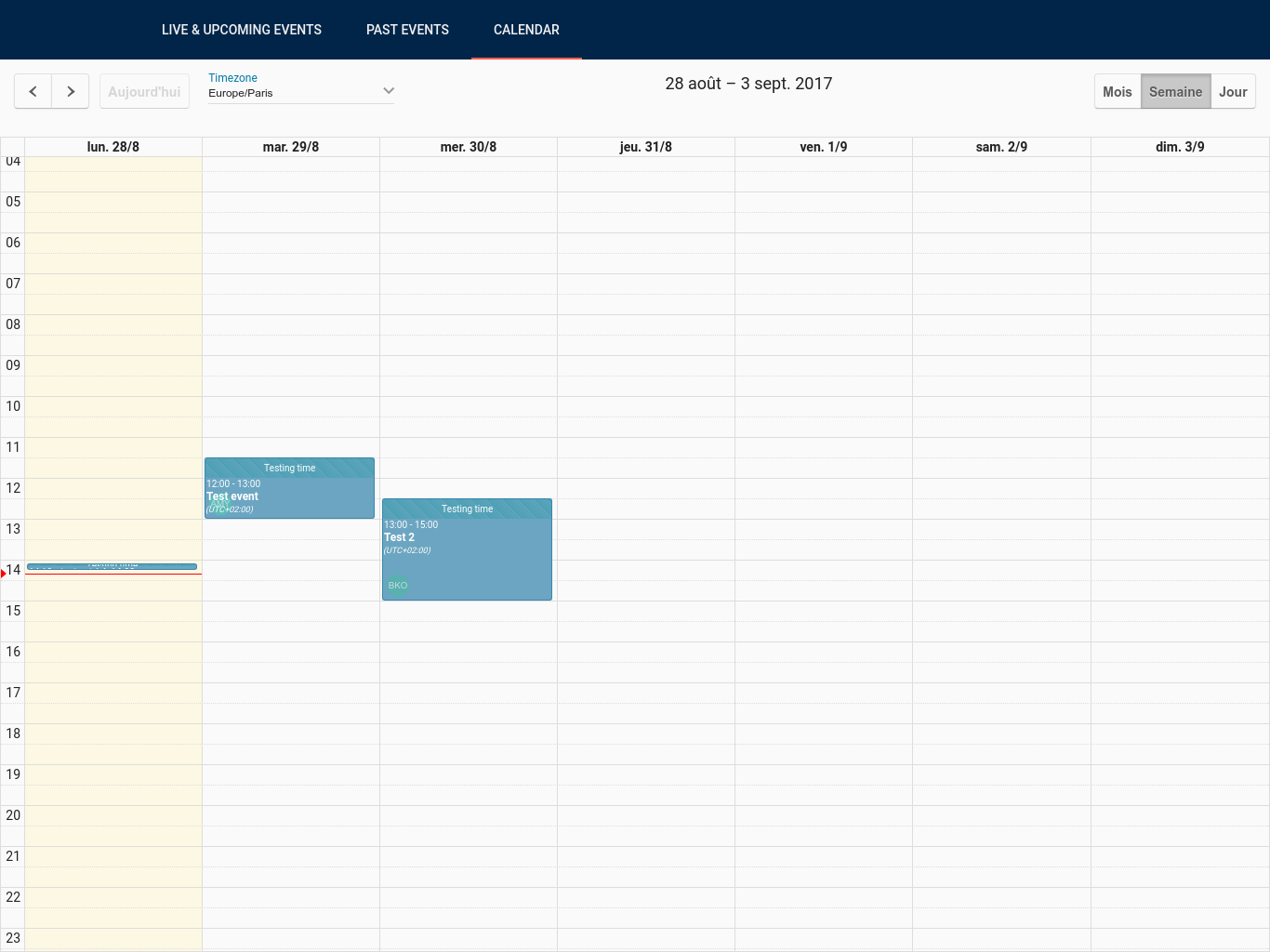 Note : If an event includes a testing period, it will be visually marked with a hatched section above the event block.