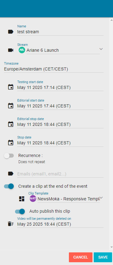 Create Clip at End of Event: Automatically generates a clip when the event finishes.