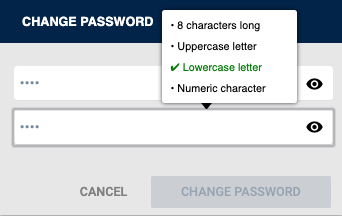 You'll be asked to provide both the old password and a new one - which must follow certain rules: