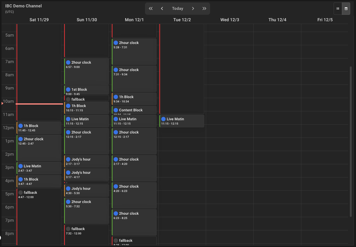 Once inside a specific channel, you enter the continuity playlist interface, divided into key functional areas: