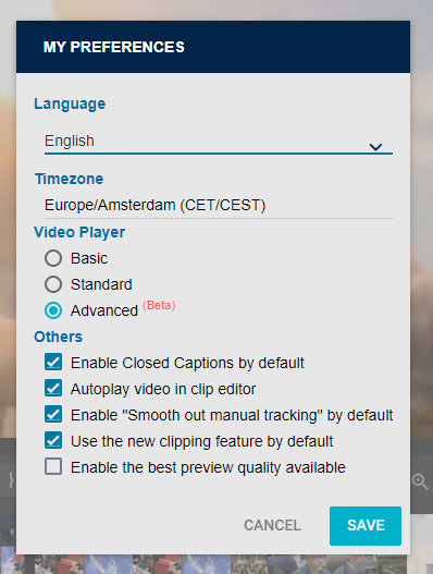 In the "My preferences" menu, there are three configuration levels for the Video Player (Basic, Standard, and Advanced). This allows us to introduce new features incrementally while minimizing potential disruptions to user workflows.