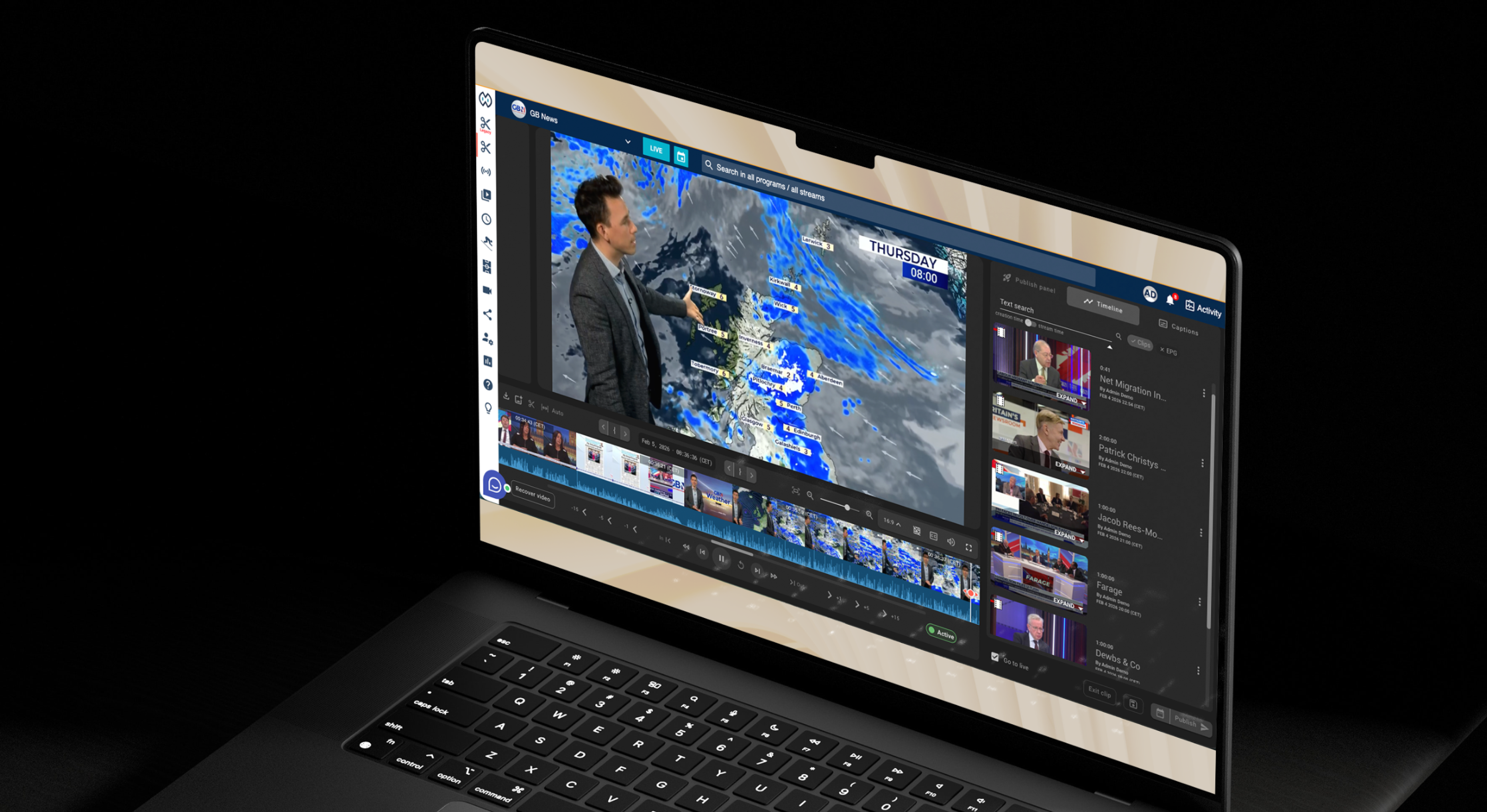 The livestream monitor and editor are now merged, letting you set clip boundaries directly while watching the live feed. You can monitor live feeds and edit clips in a single, unified interface, eliminating navigation lag.